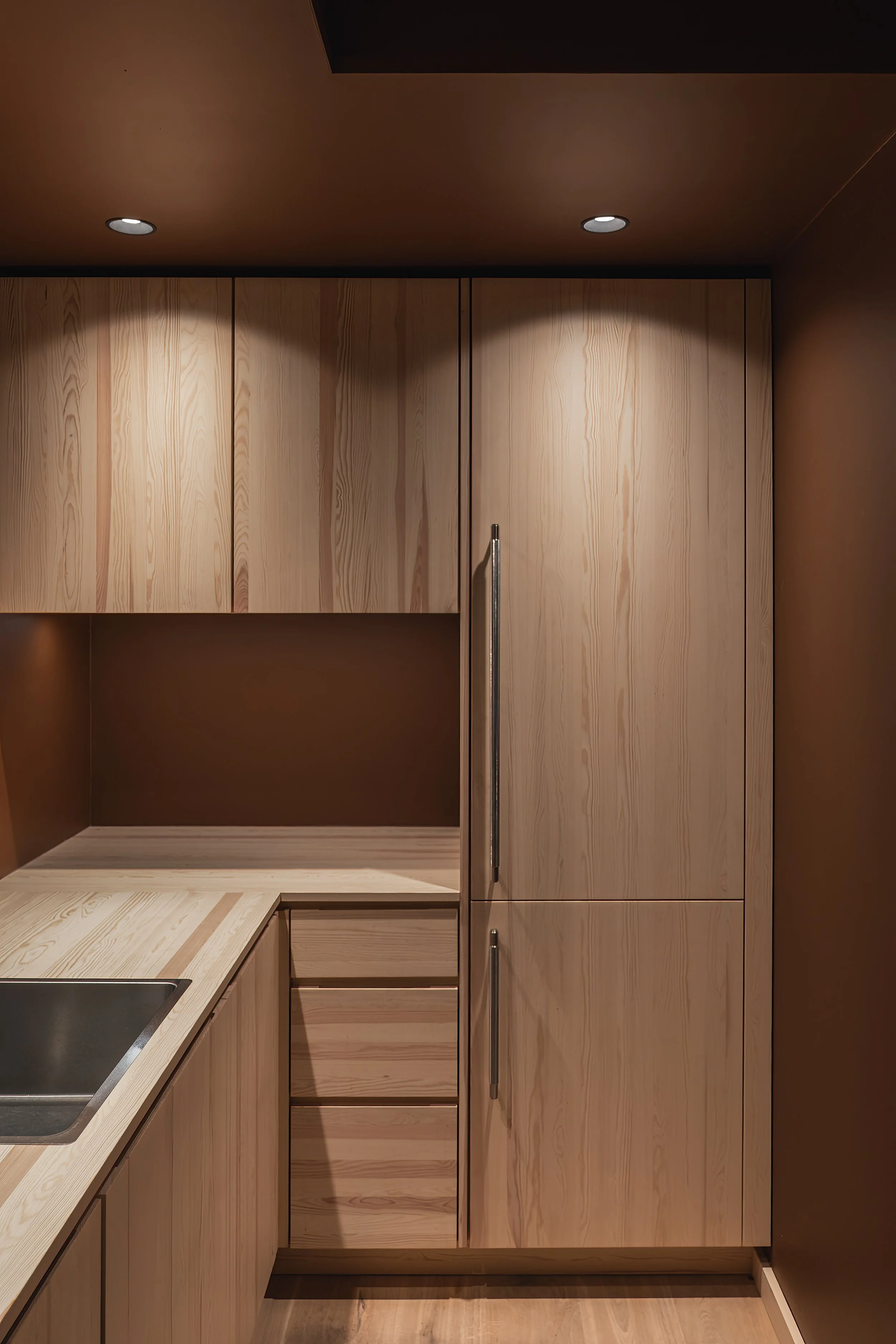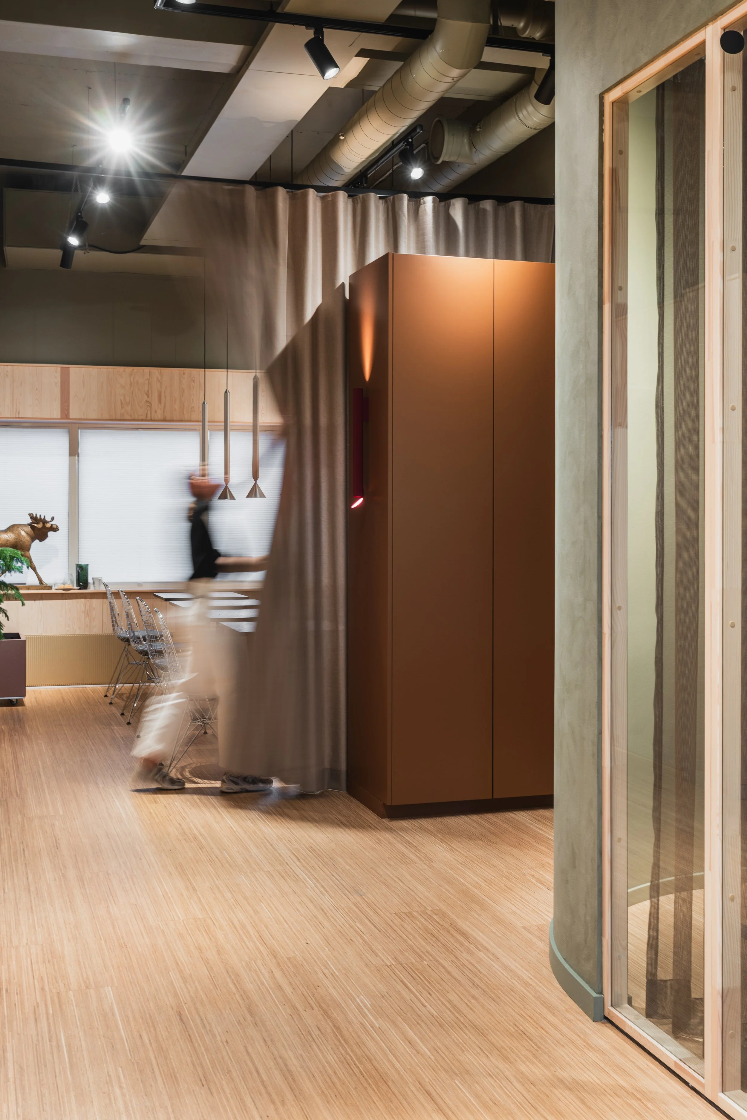 I samarbeid med den norske kjøkkenprodusenten Hamran er det utviklet spesialdesignede løsninger som tar i bruk kortreist, norsk trevirke i alt fra fast inventar, kjøkken og veggkledning. Hamrans håndverk og materialforståelse har bidratt til å gi lokalene et taktilt og varig preg, i tråd med forbundets nære forhold til skog og råstoff.
