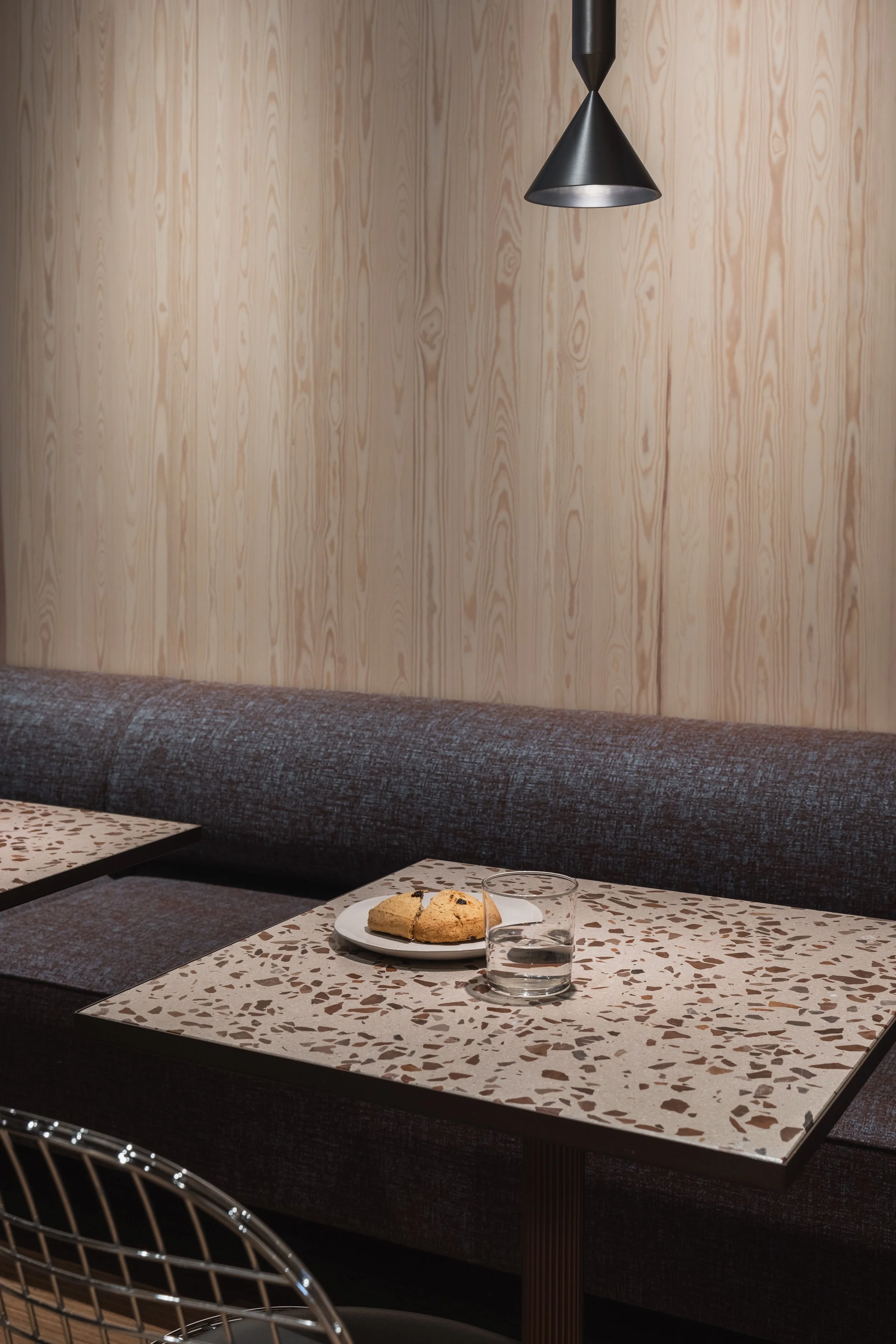 En leken bruk av materialoverganger, kontraster mellom ru og glatte flater og utvalgte detaljer gir rommene energi og karakter, samtidig som uttrykket er rolig og sofistikert.